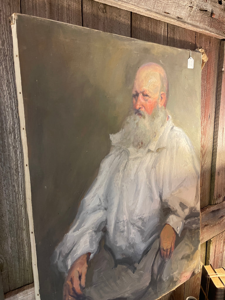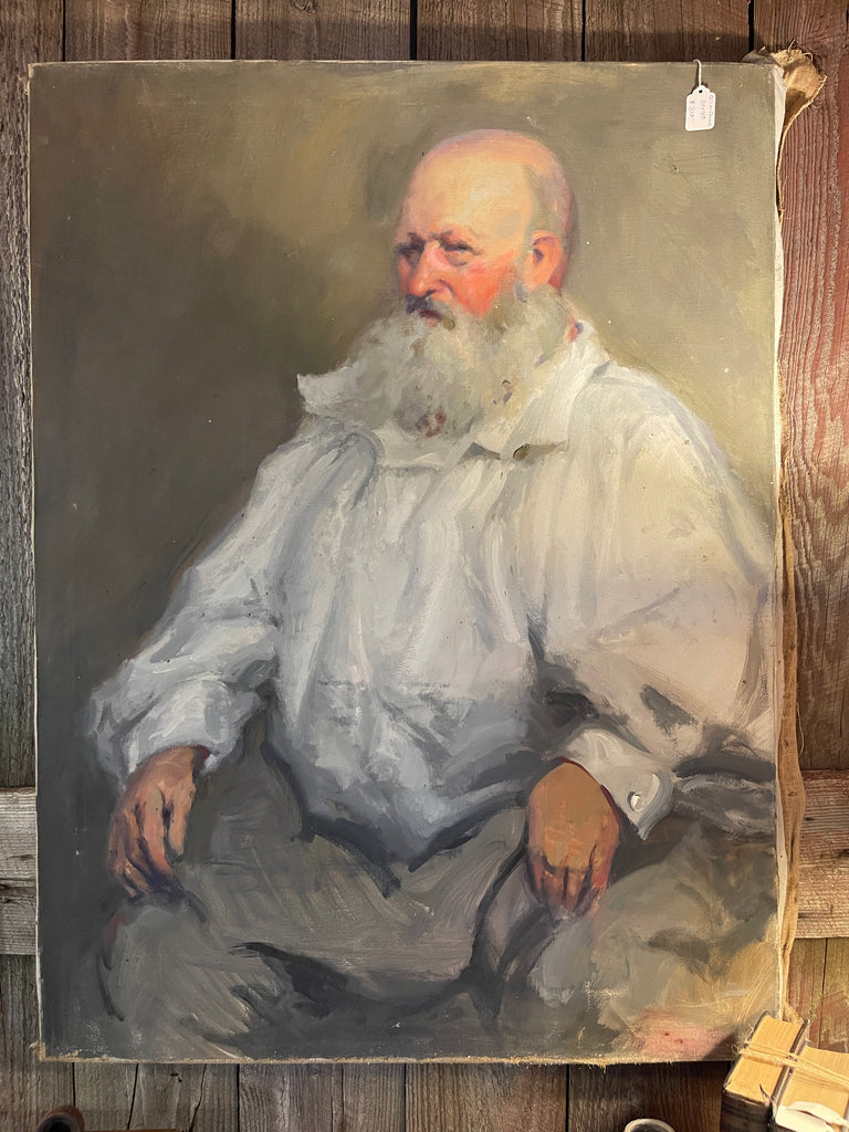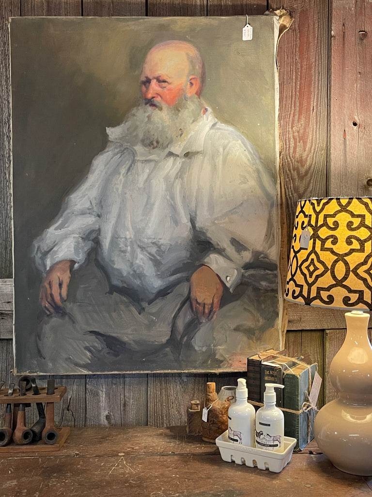 This second portrait of Rufus Bellamy presents him in a more formal pose, distinguished by a change of dress but marked by the same quiet strength seen in The Orchard Keeper. Where the first canvas ties him directly to his orchard, this painting expands his presence, suggesting Bellamy as a figure inseparable from the broader valley he returned to after the war. Locals remembered him as a man who embodied endurance and solitude, tending both land and memory with equal care. The artist’s restrained palette and somber background frame Bellamy not just as a farmer, but as a custodian of place and time—an enduring presence in the southern Vermont hills.