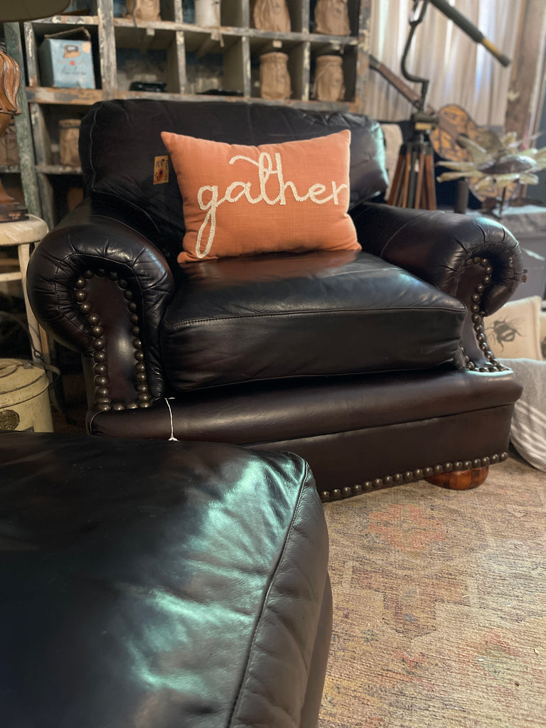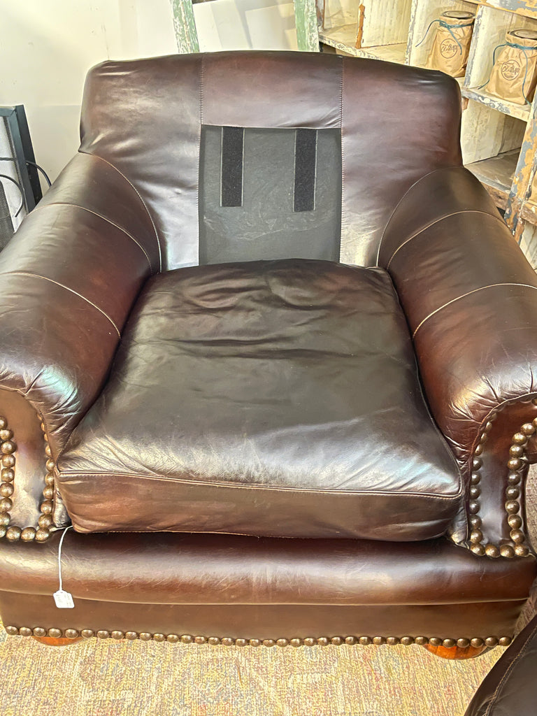Sink into comfort with this Viewpoint Leatherworks Club Chair and matching Ottoman, masterfully crafted in the United States. Upholstered in authentic espresso-finished leather, this set combines refined style with durability. Both the seat and back cushions are removable for easy cleaning, and the entire piece has been recently cleaned and conditioned, restoring the supple feel and natural luster of the leather.